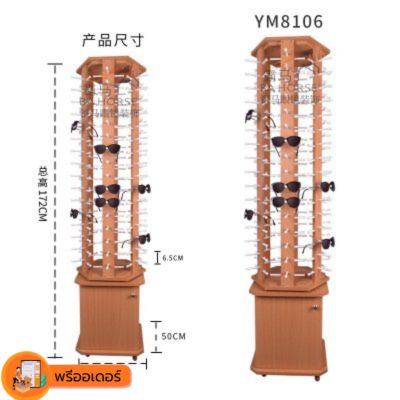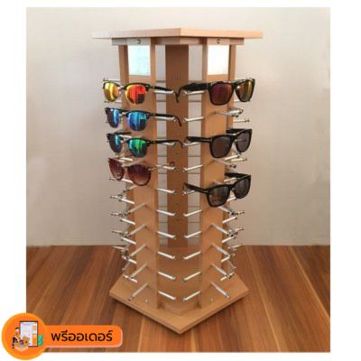 [พรีออเดอร์] ชั้นวางแว่นตาไม้ หมุนได้ ใส่แว่นตาได้ 40-50-60 ตัว